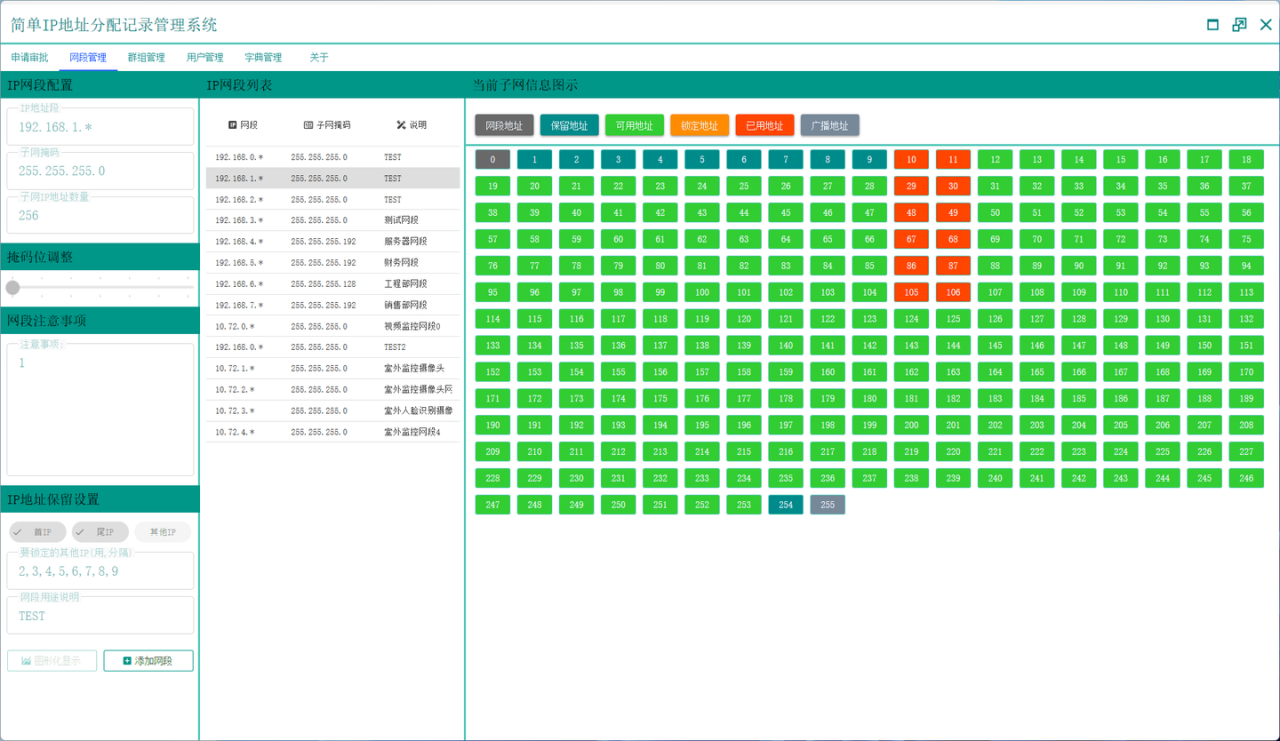 采用mysql加桌面客户端的架构,支持用户发起IP地址使用申请,管理员批准申请。