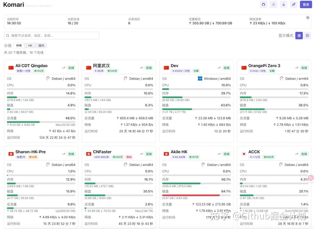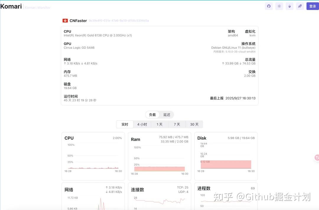 Komari 是一款专为追求 “高效简洁” 的用户设计的轻量级自托管服务器监控工具,它不追求 “大而全” 的臃肿功能,而是聚焦 “小而精” 的核心需求:让用户在几分钟内搭建起完全属于自己的监控系统,所有数据安全存储在本地,既不占用过多主机资源,又能清晰呈现关键监控信息。