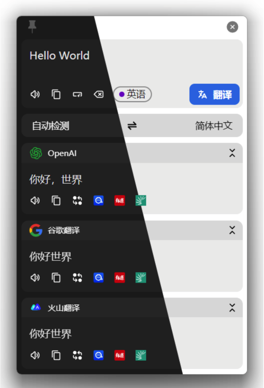 • 支持多种识别方式(划词翻译、截图OCR、语音合成等)