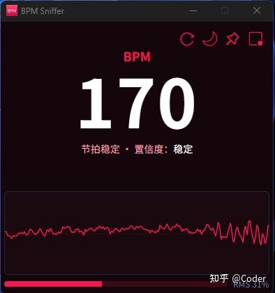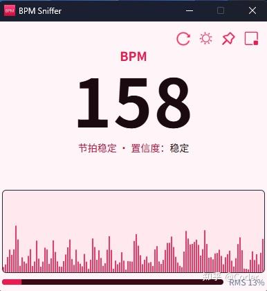 原理就是用了windows的系统回环录音API,实时录音,然后既然是音频,那就有波形,有波形就有波峰,而波峰绝大多数情况下都是鼓点,而鼓点绝大多数情况下就是节奏。所以计算波峰的间隔时间来计算BPM就可以了(当然这里面其实还有不少处理细节)。所以哪怕不是音乐,只要是有节奏的音频就可以得到一个BPM,有意思的是我开发这个软件的时候,正好碰上93阅兵直播,我一边开发,一遍把直播挂在副屏,结果把军人踢正步的BPM给恰巧算出来了,60BPM,不多不少正正好好。