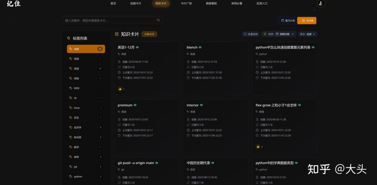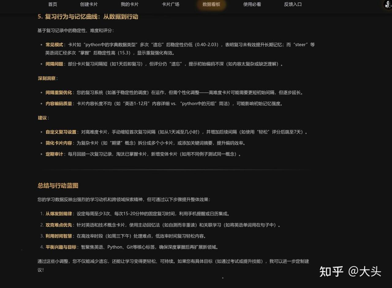 - 能根据你的记忆表现个性化地调整每张卡片的间隔;