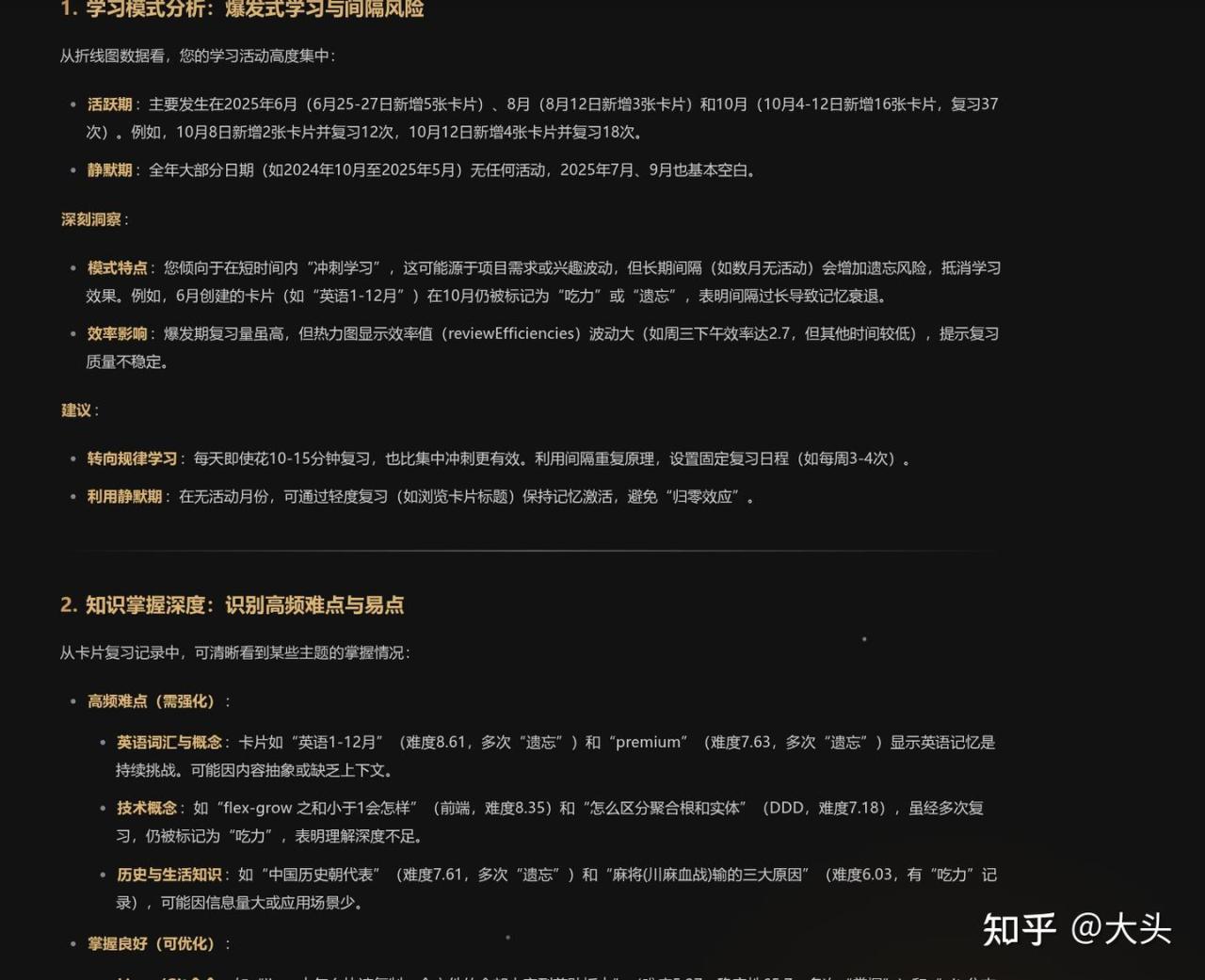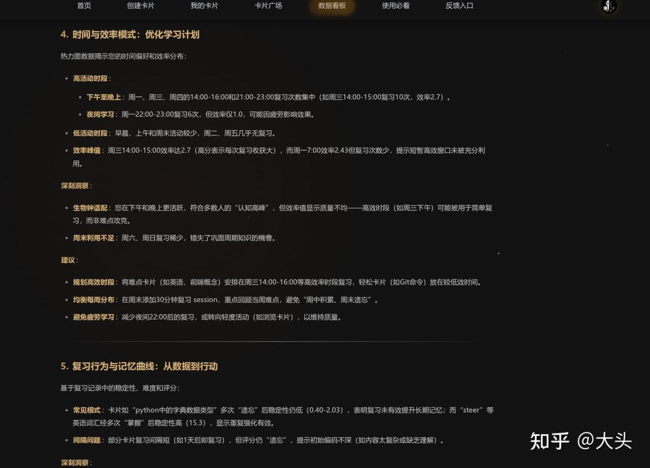 AI 优化机制基于了很多我自认为有用的学习方法论,比如原子知识点、费曼学习法(避免专业、书面化描述,而是用讲给别人听的方式)。