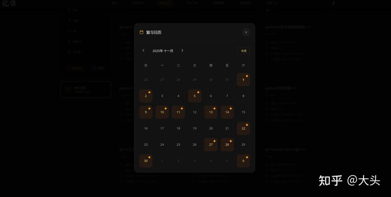 还有复习日历功能,可以看到未来哪些天有复习任务