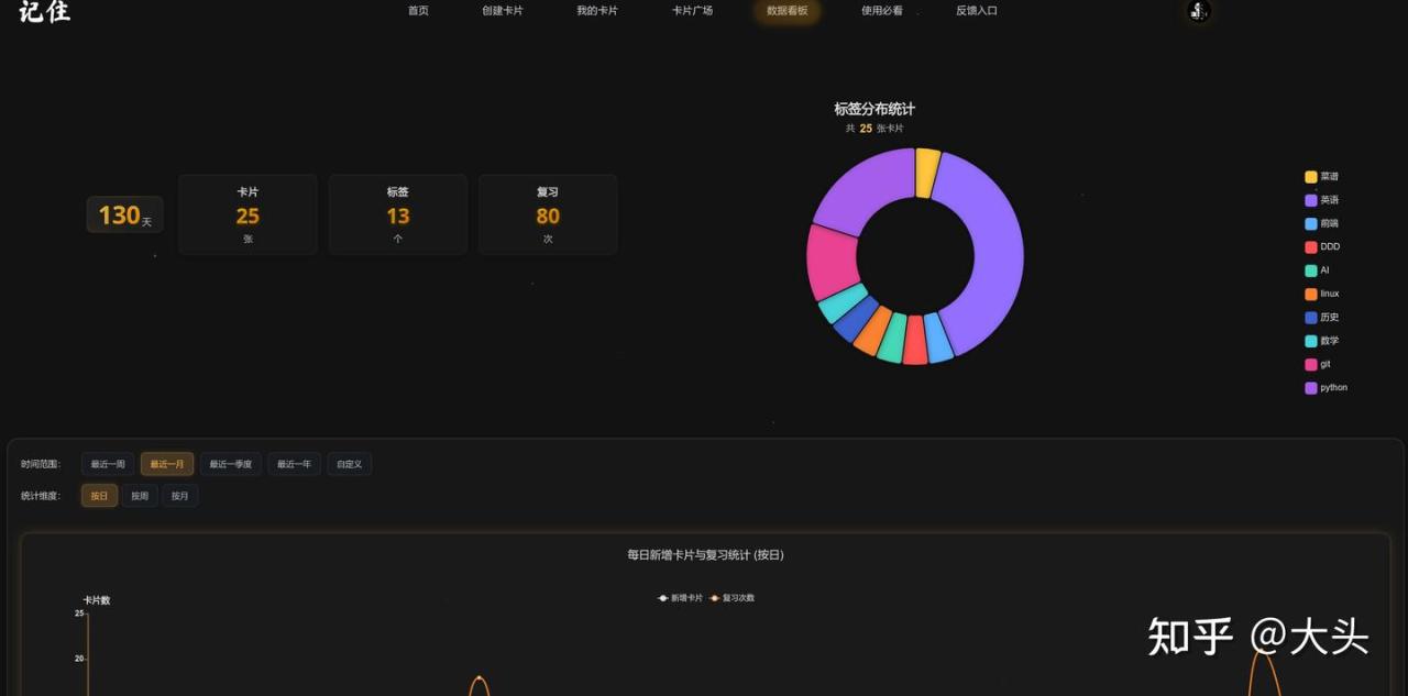 专门提供了一个数据看板页面,对各种学习过程数据进行了实时的、多维度的可视化图表展示