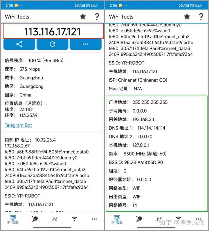 打开App,就能看到当前WiFi的所有详细信息,包括公网IP、当前局域网的IP地址、DNS、子网掩码。