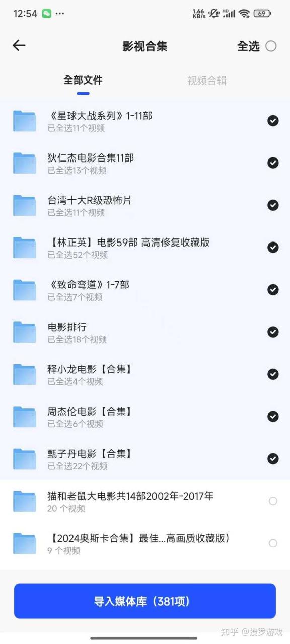点击【媒体库】或者【导入视频】,然后就可以在手机上选择哪些视频资源同步到媒体库了。