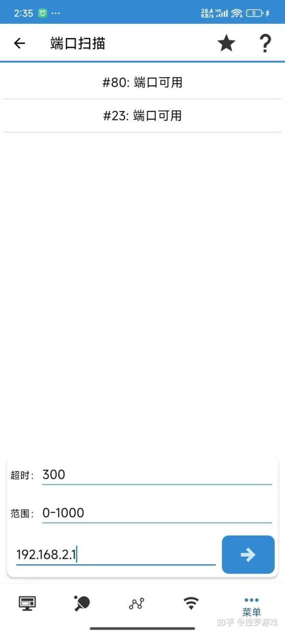 输入一个主机名或IP地址,例如「http://www.baidu.com」或者「192.168.2.1」,即可扫描出当前IP开放的端口。