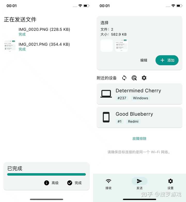 所有设备连接到同一个Wi-Fi网络,即可像苹果的Airdrop(隔空投送)一样,轻松、快速、安全地互相传输文件。