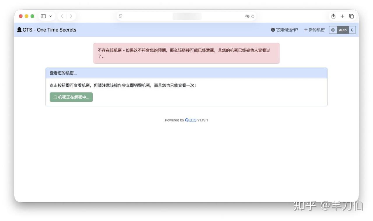 这个链接只能打开一次!自建秘密分享神器,NAS一分钟部署 OTS。