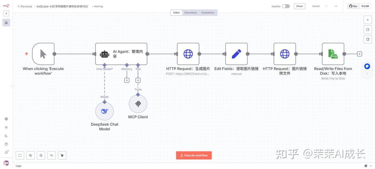 这样,你就能用更少的配置,快速实现图文卡片的生成。简单来说,就是用成熟的第三方服务,替代了 n8n 中最耗费精力的“Edit Image”节点。