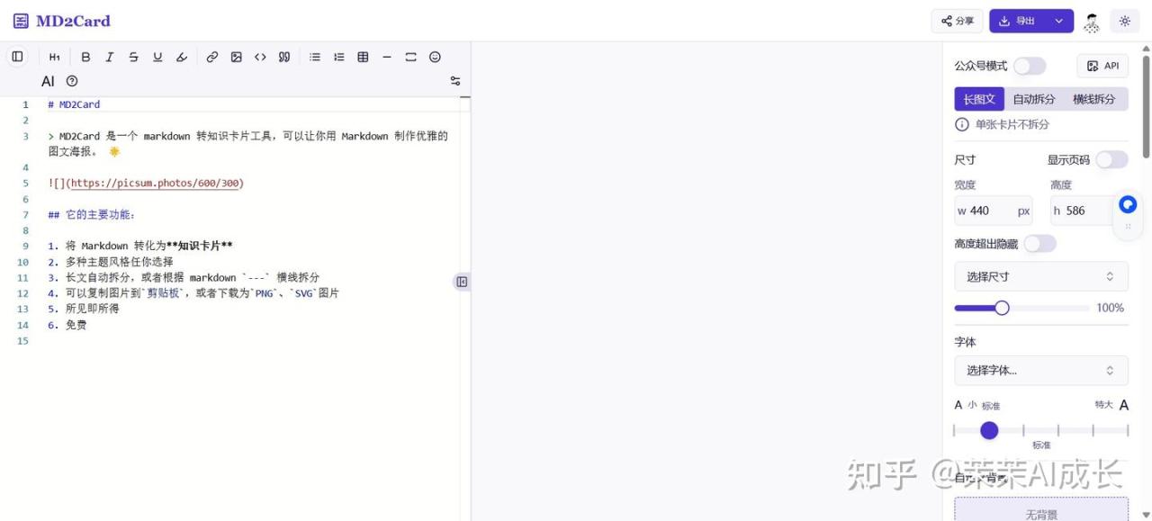 不想投入时间去调试图片坐标和字体的伙伴,可以通过MD2Card 设计自己想要的图片,网址是 https://md2card.cn/zh/editor