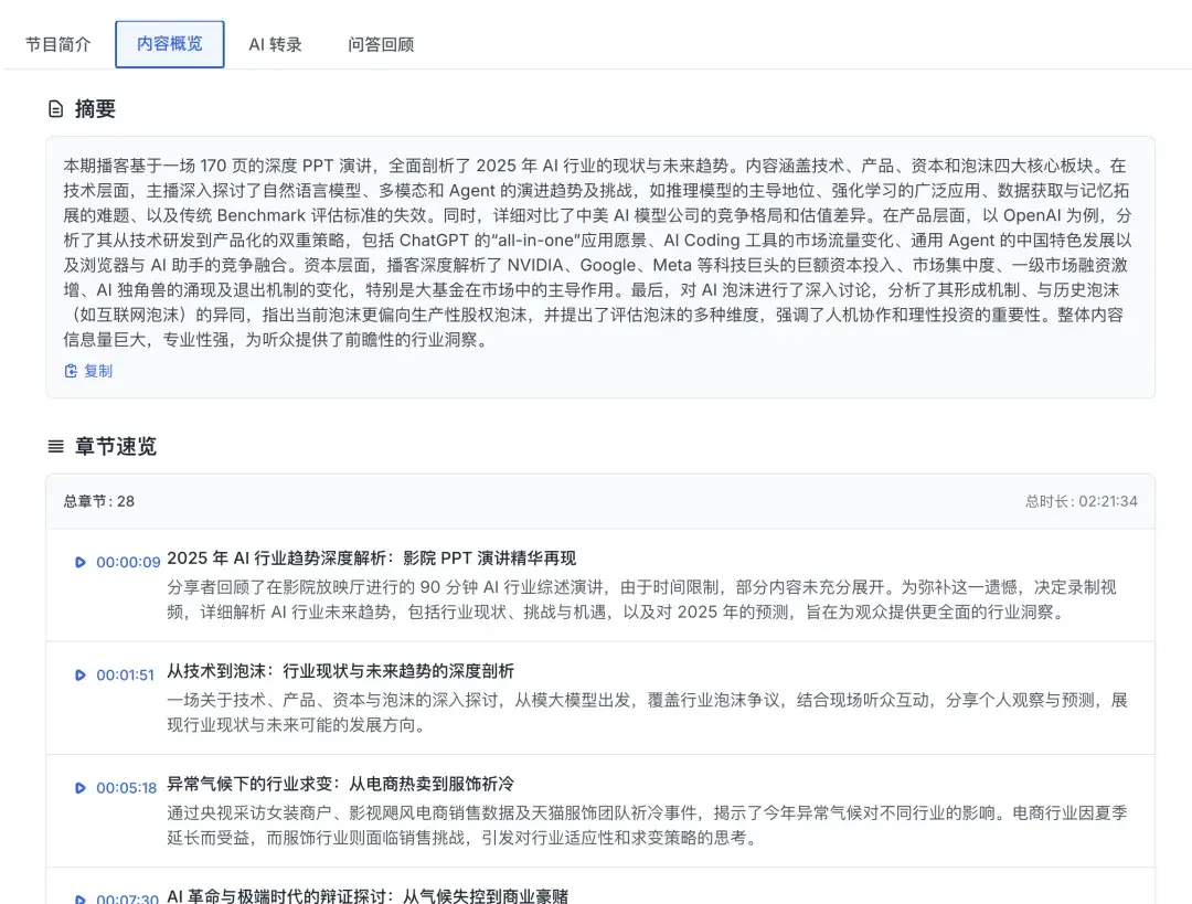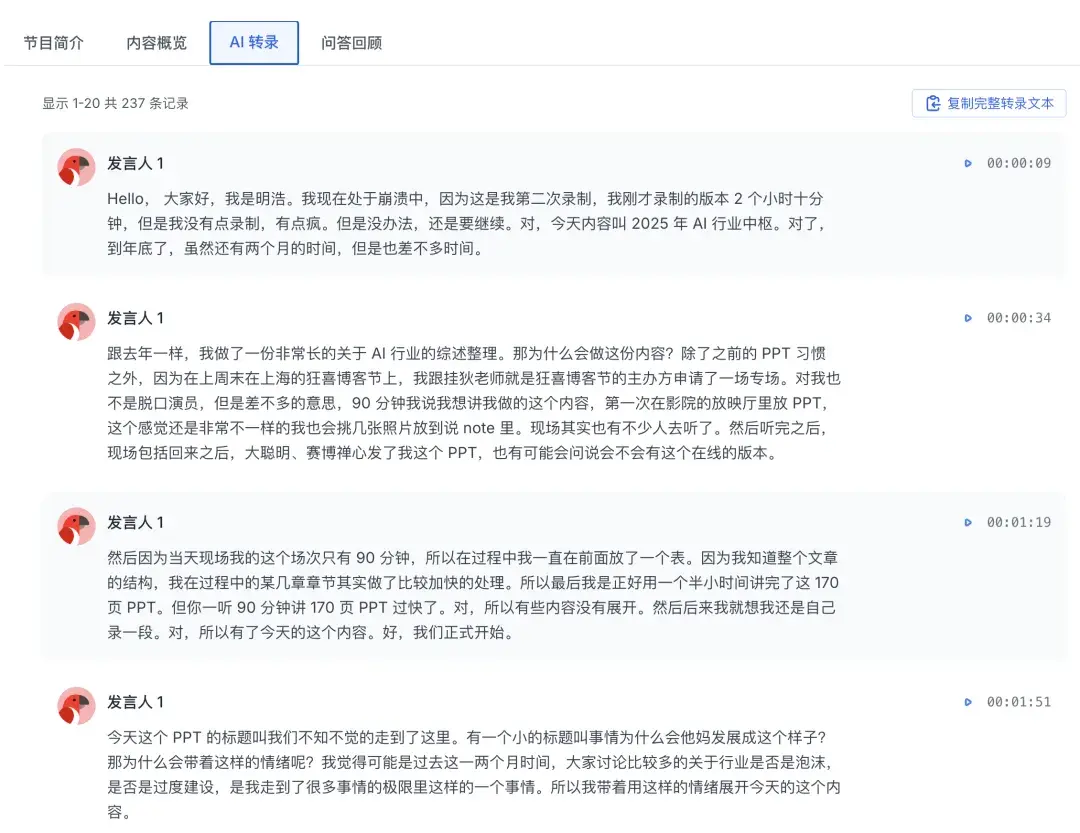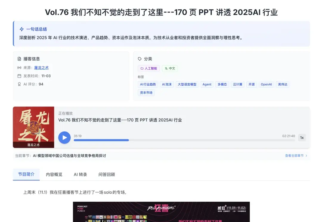 播客很棒,屠龙之术、张小珺、晚点、42 章经这些 AI 方向很优质的博客都有。