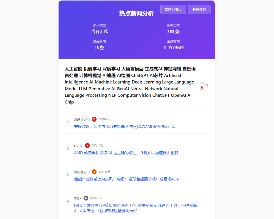 系统采用智能权重算法重新排序新闻热点,突破各平台算法限制: