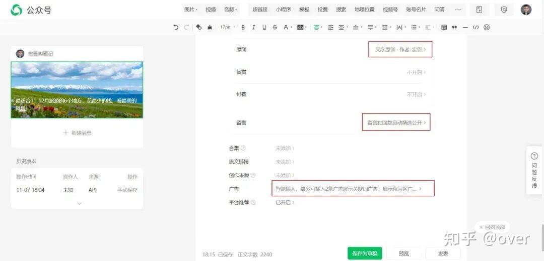 滑到底部,开启原创和底部广告,点击发布,搞定!