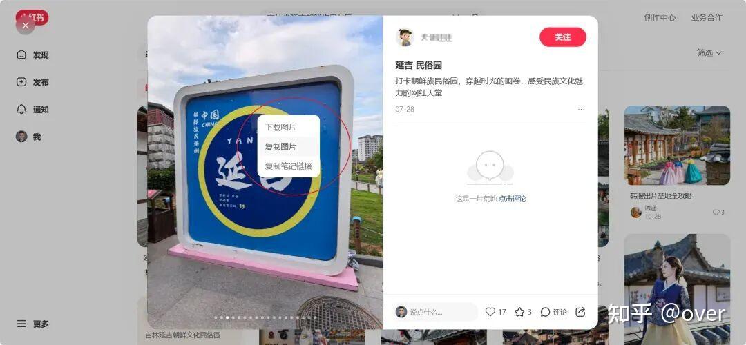 去小红书搜配图,复制关键词如【吉林省延吉朝鲜族民俗园】,右键复制图片粘贴到文章。