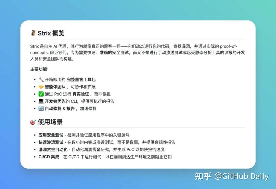 对于开发团队和安全工程师来说,Strix 能把原本需要人工做几周的渗透测试压缩到几个小时,误报率也比传统扫描工具低不少。