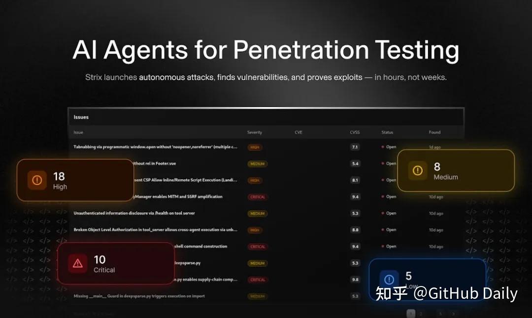 它利用 AI 智能体来做渗透测试,不是简单扫描,而是真的会像黑客一样去攻击你的应用,甚至还能自动验证漏洞是不是真的存在。
