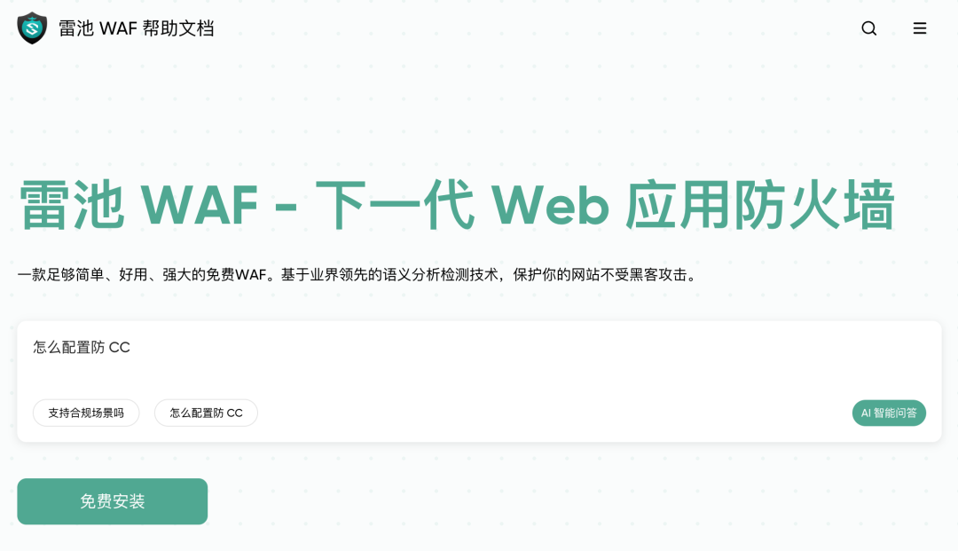 带着焦虑不安的心情,于是我在 GitHub 上找到了 SafeLine, 中文名叫 “雷池”,一个简单好用且强大的 Web 应用防火墙(WAF)工具。
