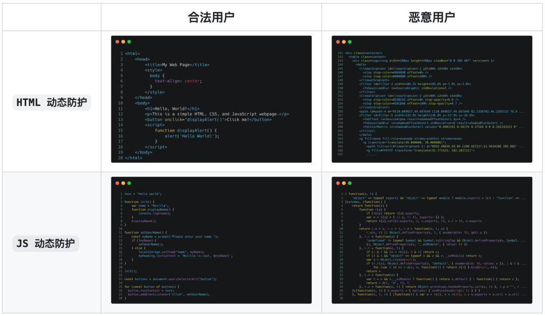 通常我们的网页代码在浏览器里是固定的,容易被攻击者分析。