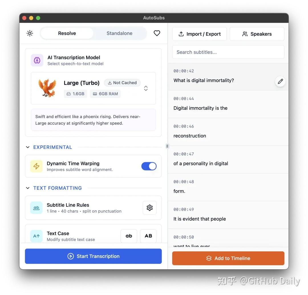 后来折腾了一圈,发现一个开源免费的工具叫 AutoSubs,用到现在,基本成了我的主力字幕工具。