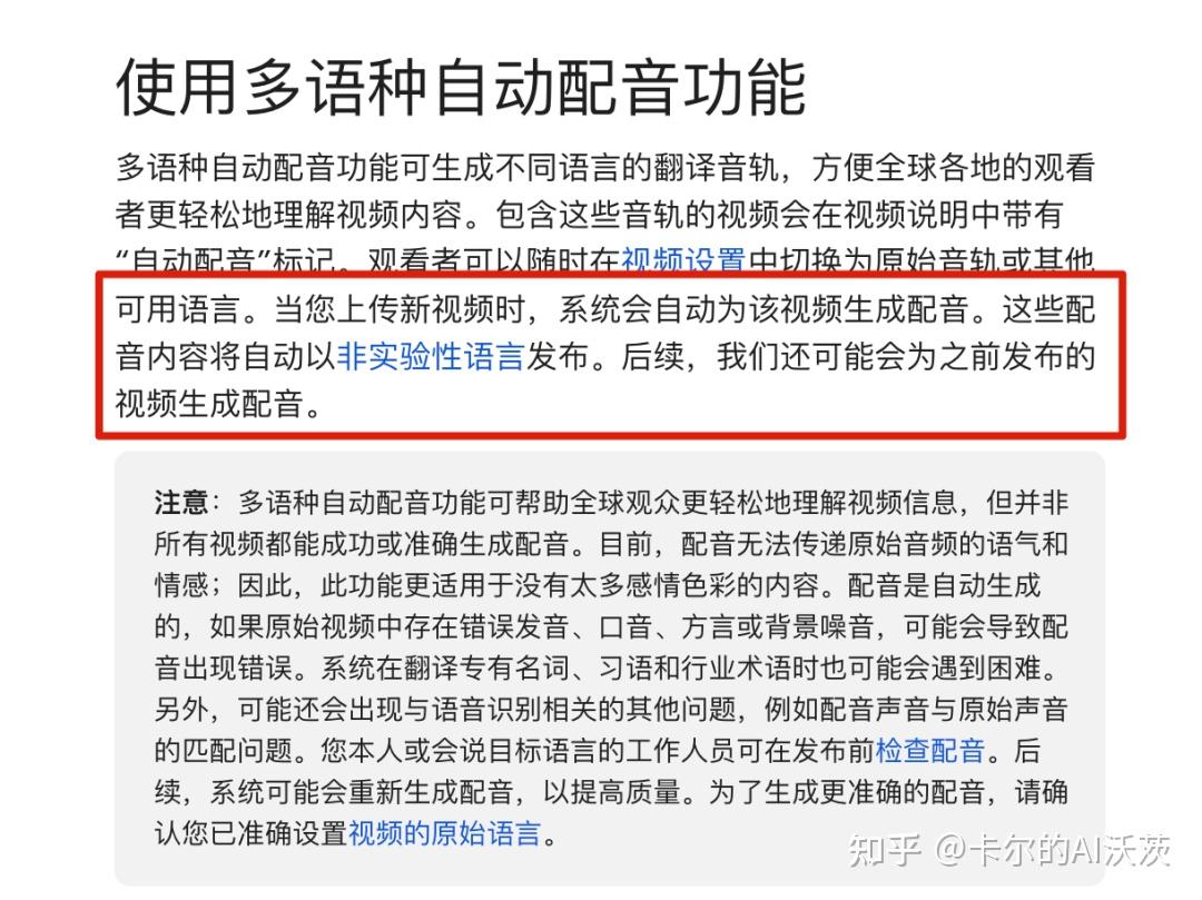 当时也有说YT平台出了一个自动给英文视频生成多语种配音