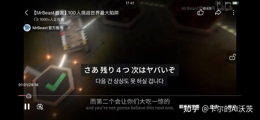 热知识,野兽先生还一周前还开通了B站首家多字幕多音频,我头一次看到一个视频里有日语,英文,中文,韩语的。