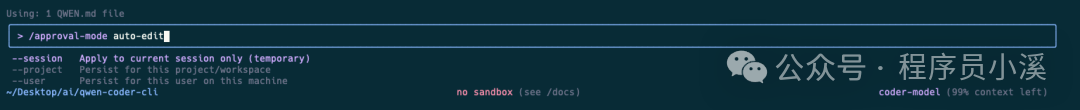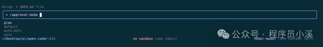 Qwen Code CLI新增的交互式命令,用于更改工具使用的审批模式