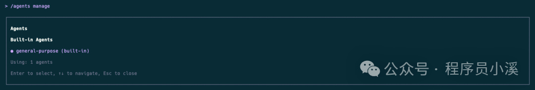 - manage:打开交互式管理对话框以查看、编辑和删除现有子代理,用法:/agents manage