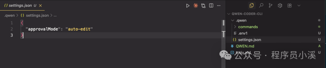 Qwen Code CLI延续了Gemini CLI的配置文件系统,提供了 .qwen/settings.json、.env、QWEN.md等配置文件,整体上和Gemini CLI的配置文件没有太大差异。