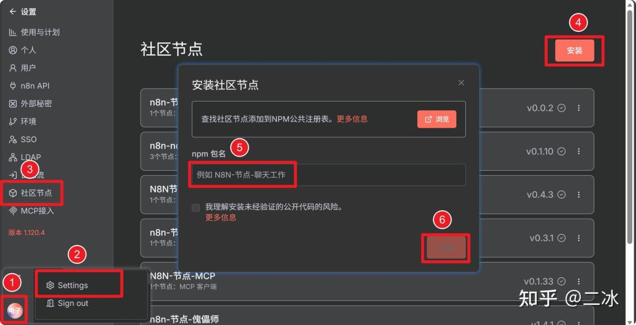 头像 >> settings >> 社区节点 >> 安装 >> 输入节点名称 >> 安装就行了