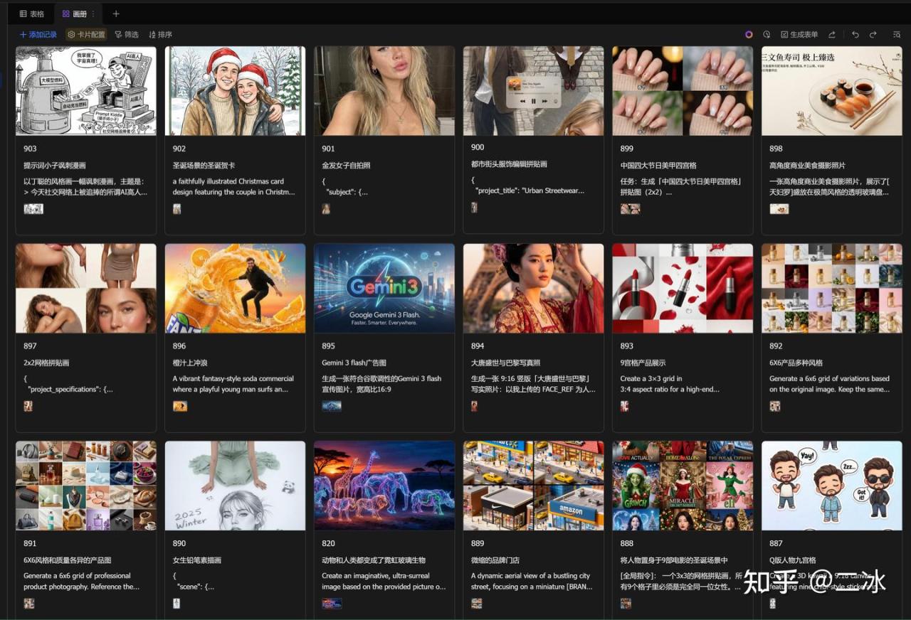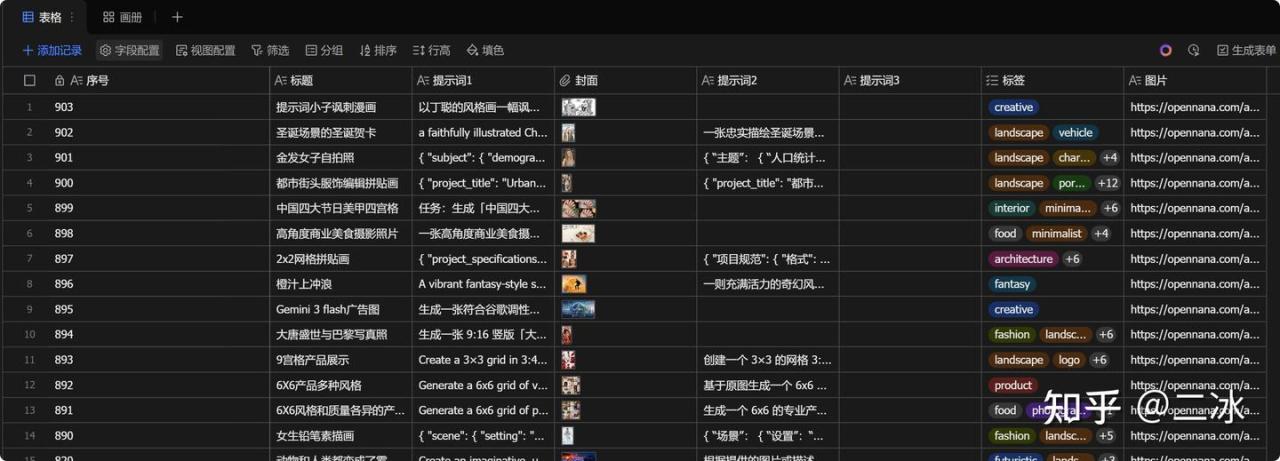 既然有了生图的工作流,那咱们就要有提示词,二冰看上了一个分享nano banana pro prompt网站,这里的900+个提示词我都想要,要是都存到多维表格里,那我岂不是想要生成啥都行了,说干就干