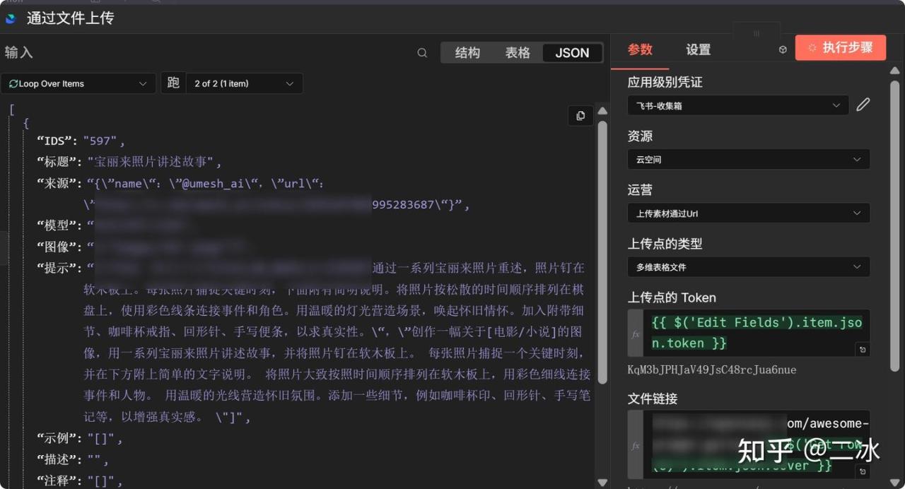 你会看到n8n开始一条条地跑循环,同时你的飞书多维表格里,数据开始一行行地蹦出来,封面图也自动上传好了。