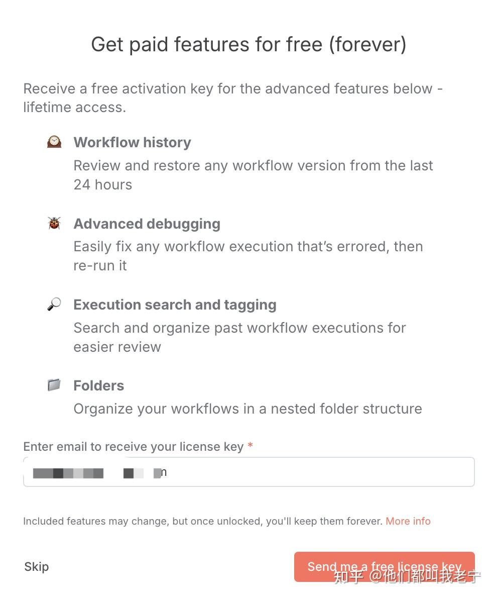 🔻 设置完账户信息后,在进入主界面之前可以免费获取激活密钥来获得一些功能。点击发送证书密钥后,会收到一封 license key 邮件。