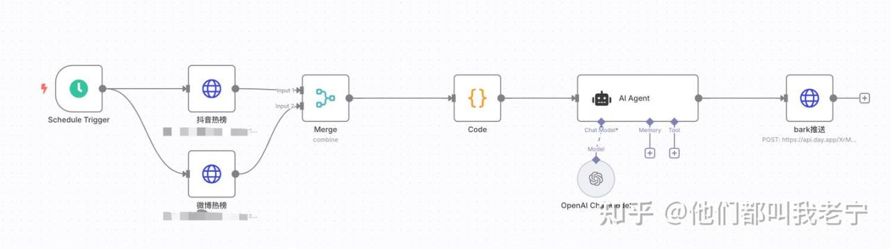 限于篇幅,无法展示每个节点的详细参数配置。 我已经把这个工作流打包成了 JSON 文件,直接导入 n8n 就能用。 感兴趣的朋友,可以添加老宁微信,免费发你这份自动化模版。
