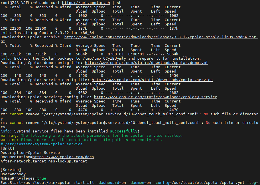 sudo curl https://get.cpolar.sh | sh