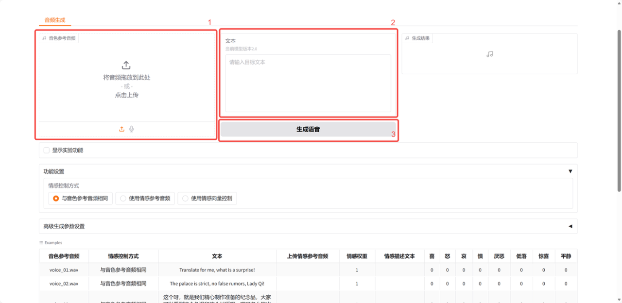 - 上传音色:传一个几秒钟的 MP3(比如姜文老师的语音)作为参考音频。如果没有,可以用系统自带的。