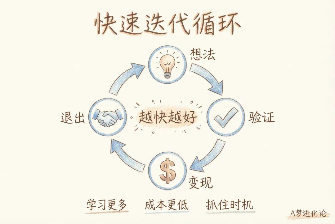 说白了,他在训练自己的「创业肌肉」:从想法到验证到变现到退出,整个循环跑得越快,你学到的越多,犯错的成本也越低。