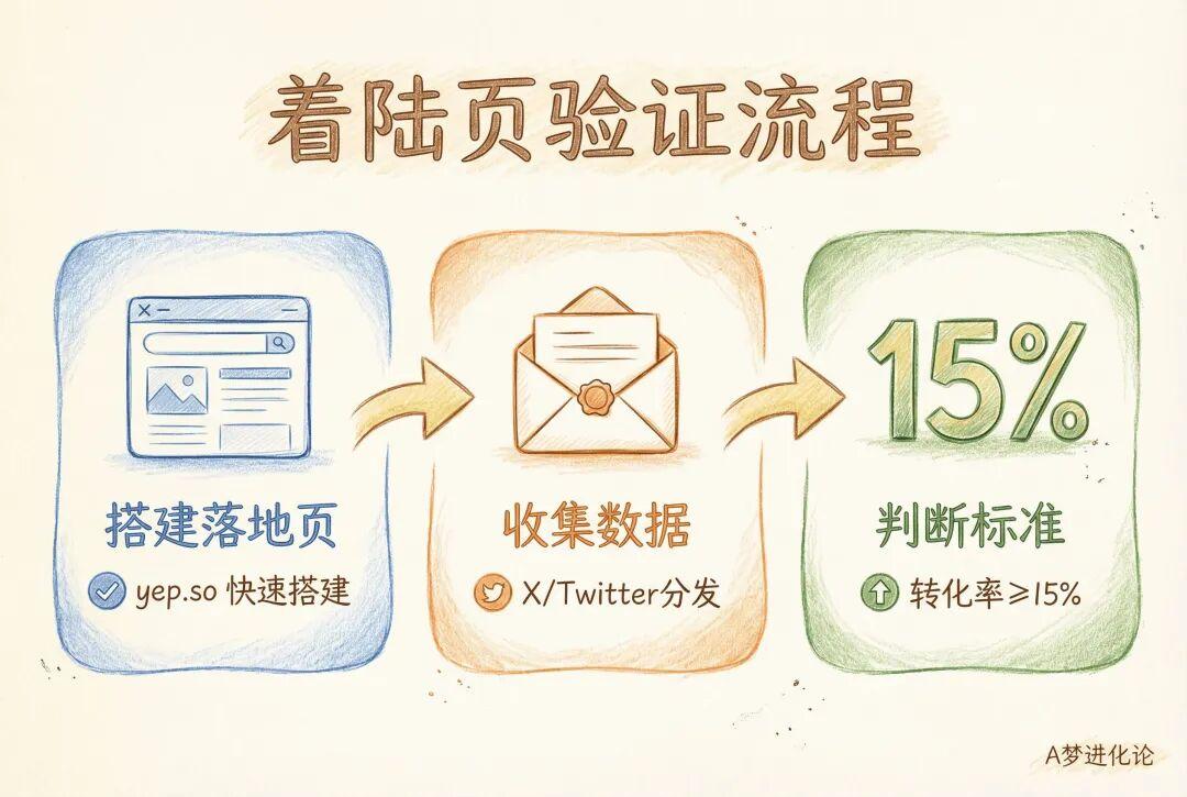他的判断标准很简单:落地页转化率达到15%,才值得继续做。