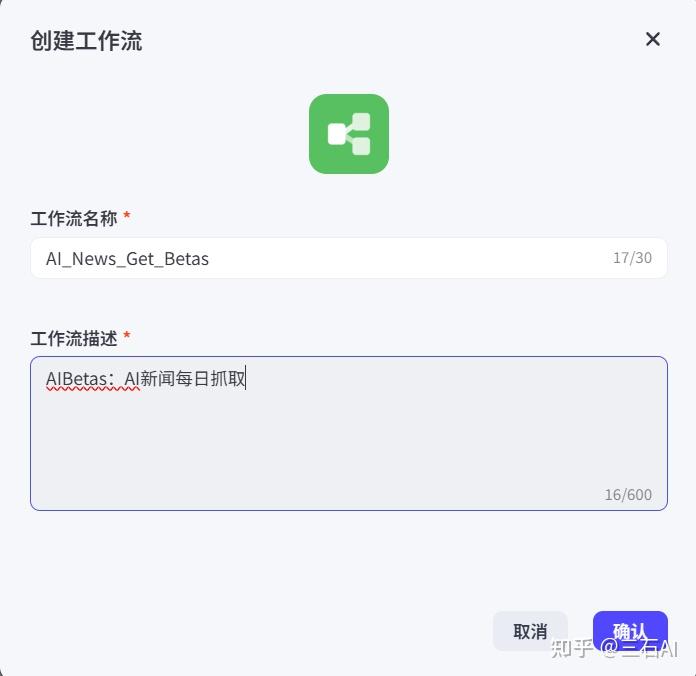 创建工作流名称和工作流描述即可,注意工作流名称只能用英文