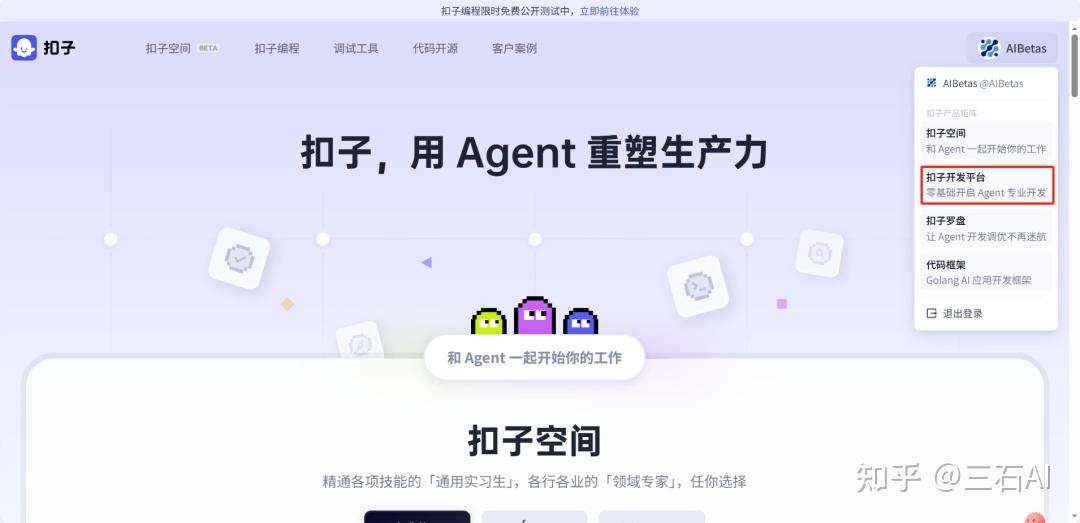 打开扣子的官网,登录之后进入扣子开发平台