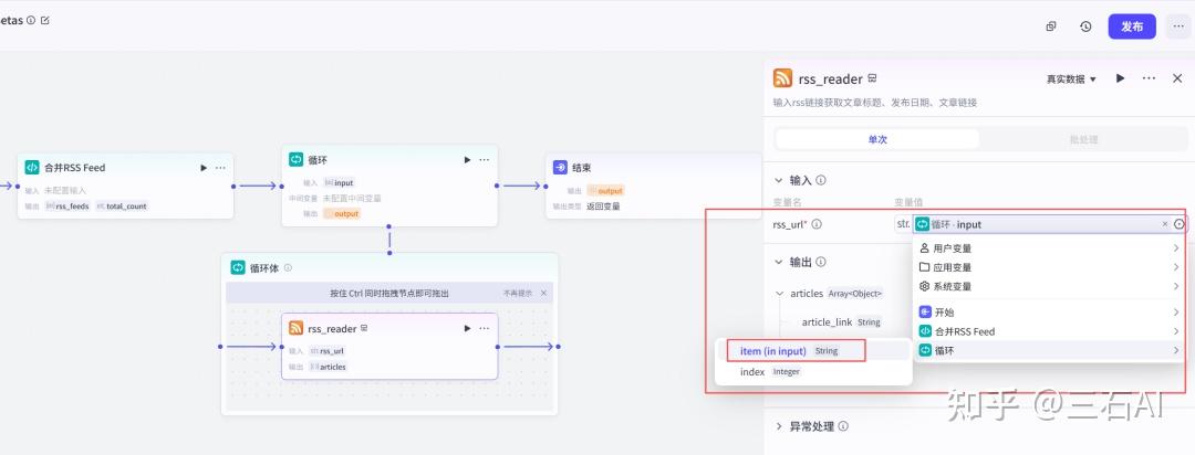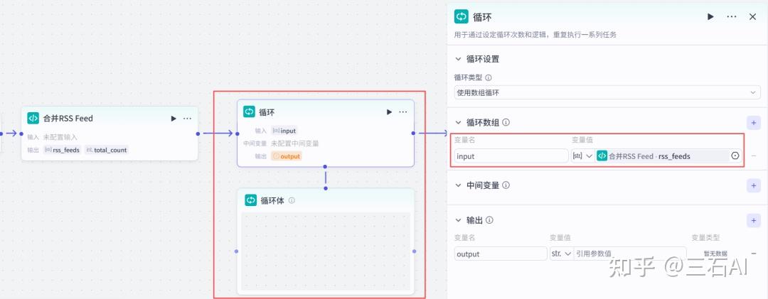 循环节点:添加循环节点,逐个读取RSS源