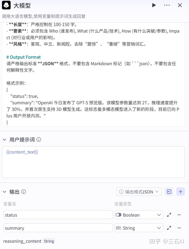 - 模型选择:阅读长文章非常消耗扣子(Coze)的资源点数。在测试阶段,建议选择更轻量、更便宜的模型,避免还没跑通就把资源耗尽。