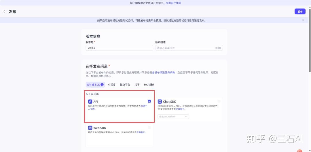 定时设置好之后,点击发布-选择勾选API