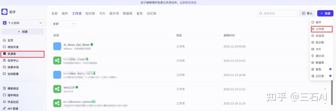 进入后,点击:资源库-右上角资源-工作流