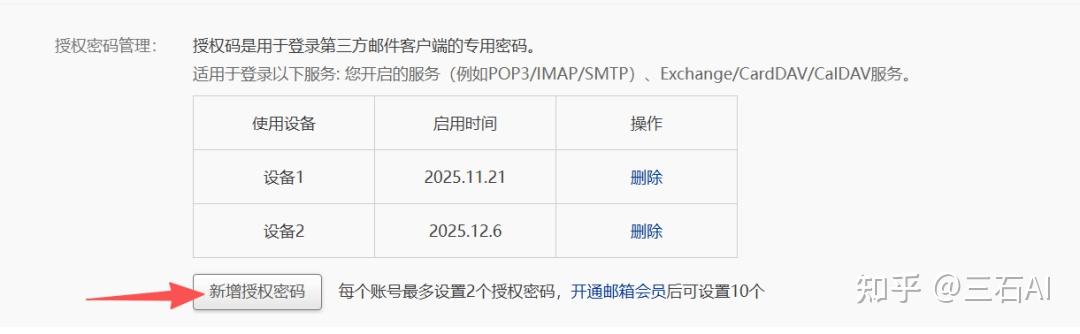 新增授权密码,将生成好的授权密码复制保存下来