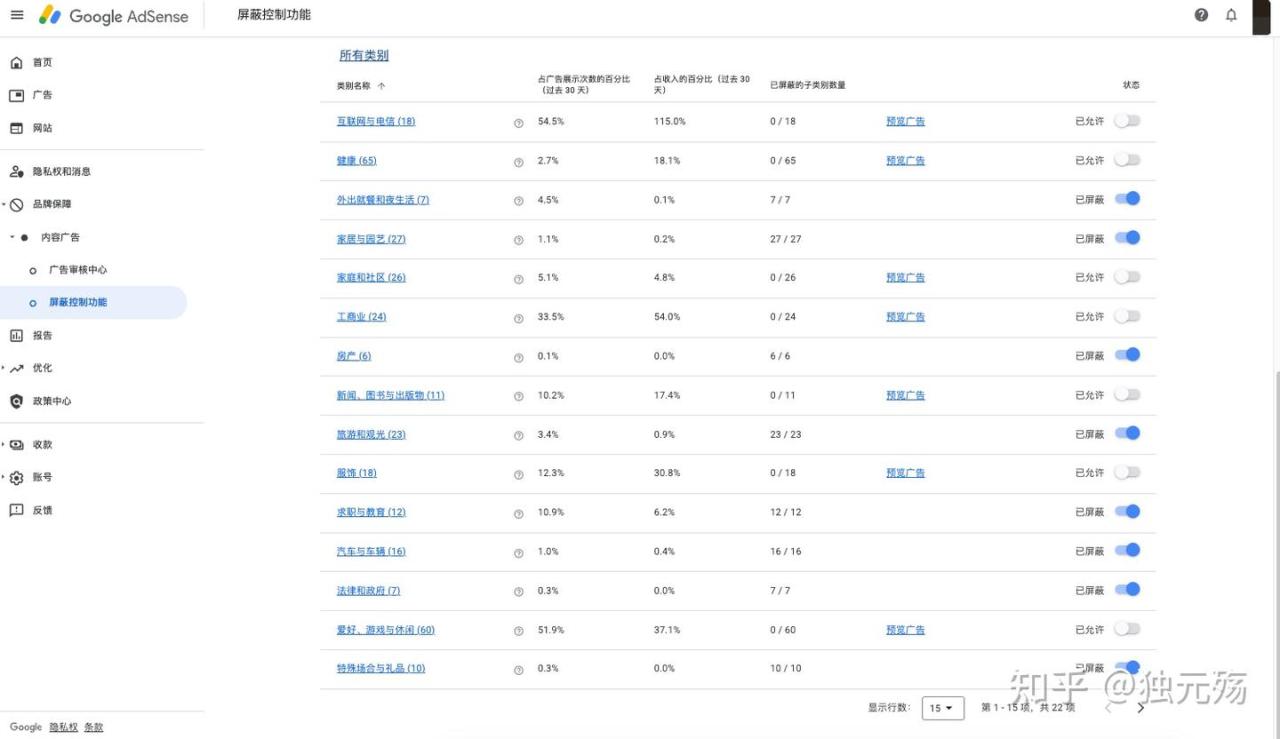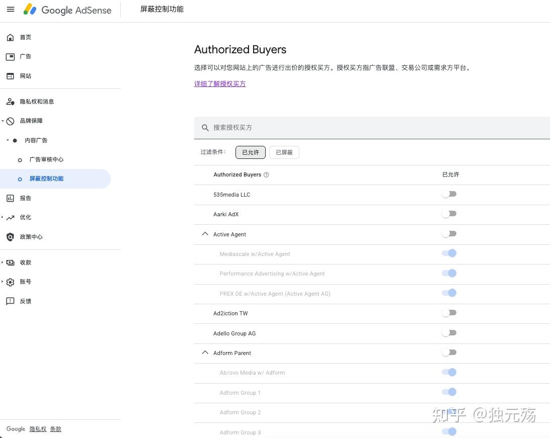 于是需要我们去手动「解约」了!默认我们一切广告代理商的广告都接的,毕竟谷歌也要收中介费嘛,需要一视同仁,理解。