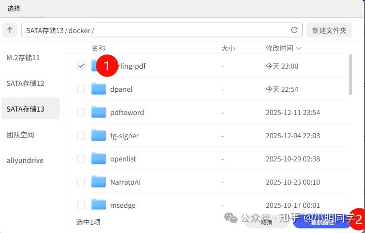 接着,点击黑框上方的查询路径按钮,切换到刚才我们上传的文件目录夹下,点击复制路径。将复制下来的路径,替换代码中的【./stirling-data】,并启动容器 Compose。