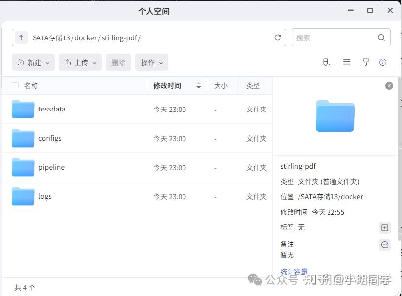 在极空间的个人空间目录创建stirling-pdf目录,创建对应的子目录
