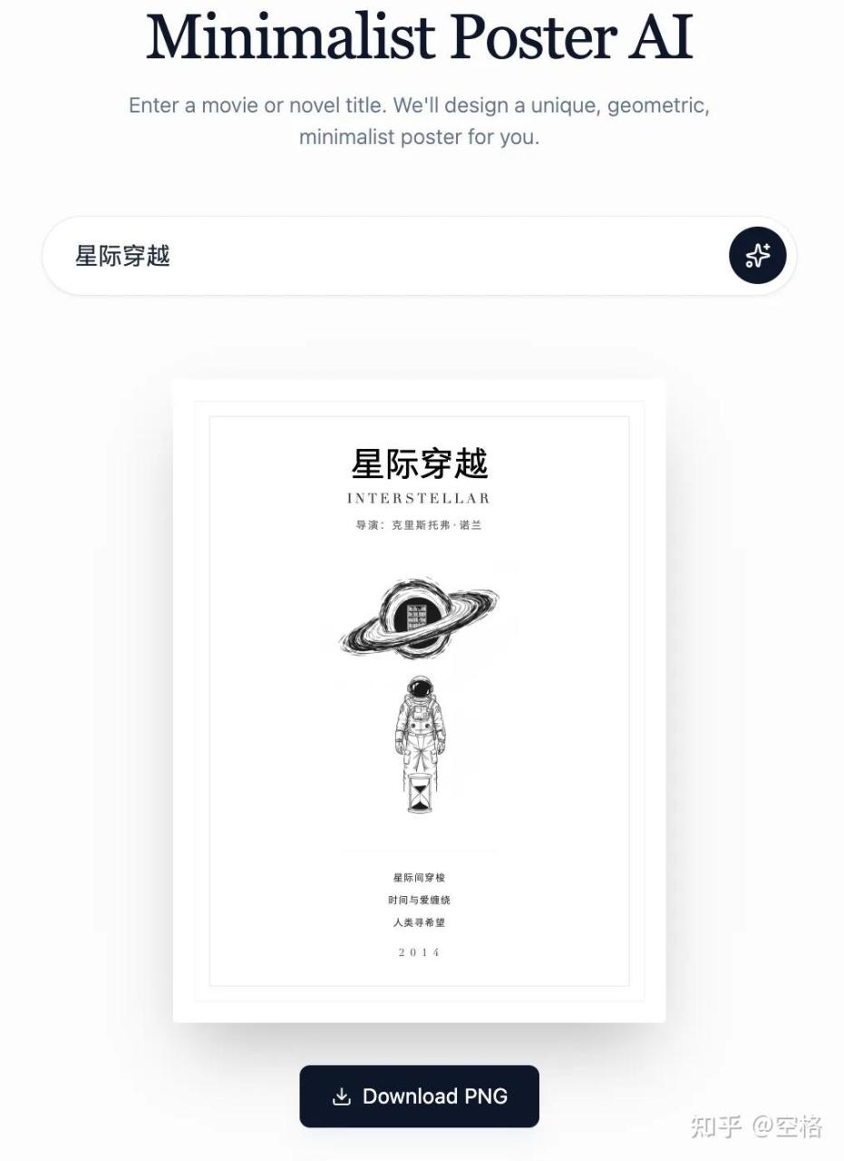 再来看一下,这个是一个电影海报的制作,比如写一个星际穿越。也是跟上一个一样,前端用了svg中间用了Gemini画图。我要求它画的是一个黑白的图,和整个的背景有一个融合的效果。