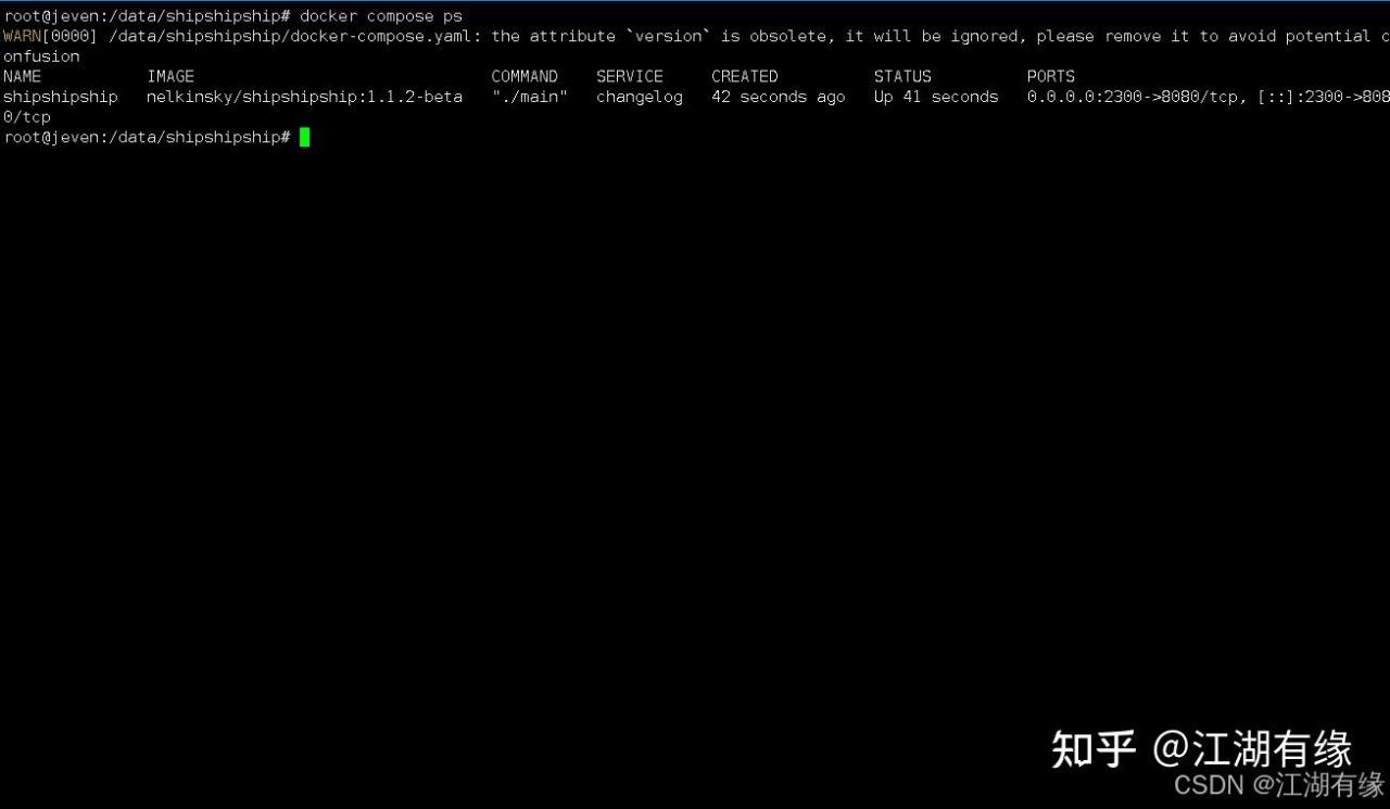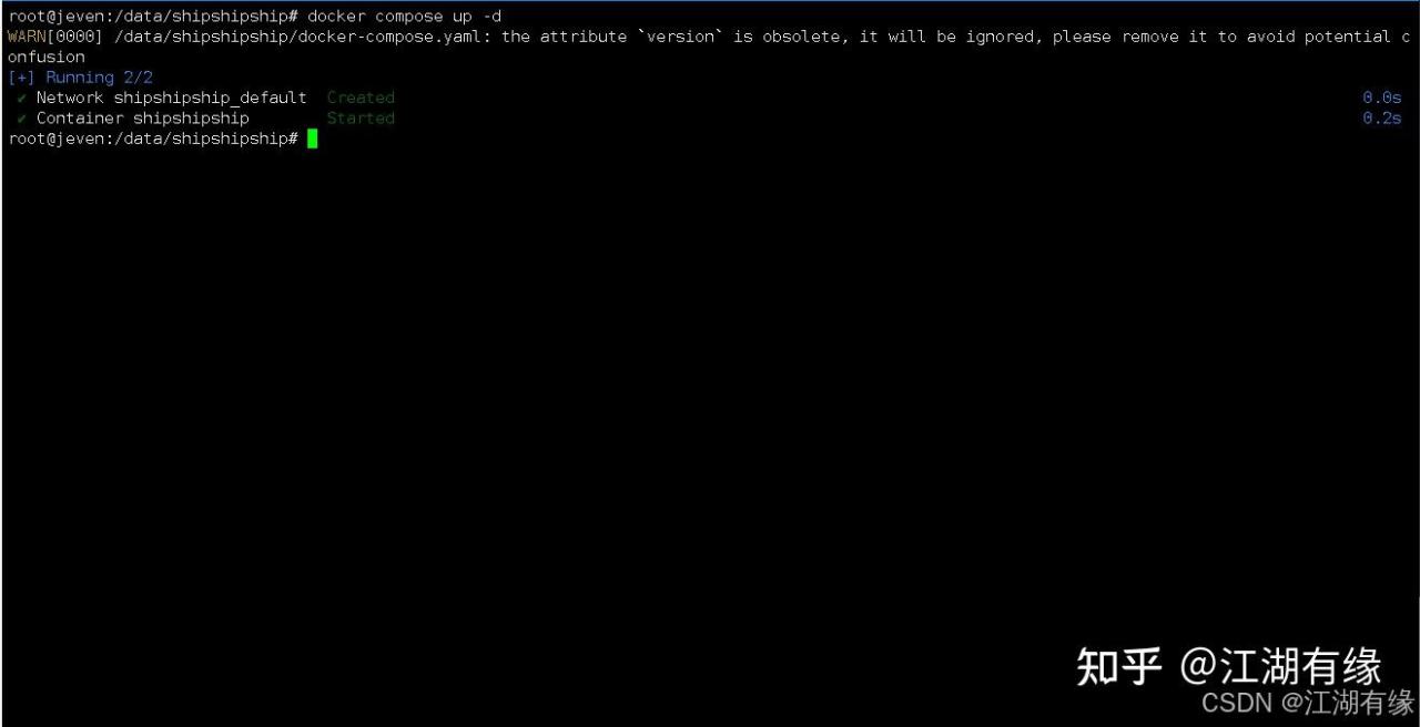 WARN[0000] /data/shipshipship/docker-compose.yaml: the attribute `version` is obsolete, it will be ignored, please remove it to avoid potential confusion